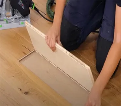 Kai medinės lentos išimtos, pagrindas nusiurbtas ir įlaidos bei išdrožos nepažeistos, tuomet jas galima naudoti pakartotinam sujungimui.