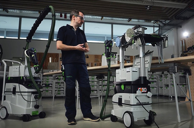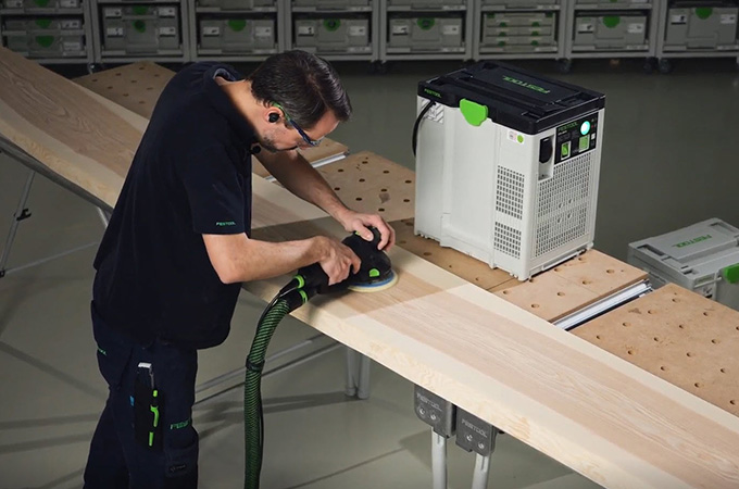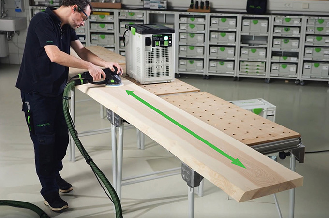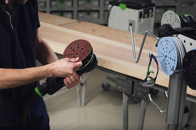 Obliuoti mediniai paviršiai turi vadinamąsias obliavimo žymes, dar vadinamas obliavimo žymėmis, kurias sukelia obliavimo peiliai. Prieš dengiant paviršių, jas reikia nušlifuoti. Dėl to paviršius tampa lygesnis, vientisesnis, o paviršiaus danga geriau sukimba arba geriau įsiskverbia į medieną. Jei neturite didelių stacionarių šlifavimo staklių, šį veiksmą galima atlikti naudojant rankinę šlifavimo mašiną. Tam idealiai tinka šlifavimo mašina ROTEX, nes joje vienoje mašinoje suderintas šiurkštus šlifavimas ir atsitiktinis orbitinis šlifavimas. Kadangi šis darbas dažniausiai atliekamas dirbtuvėse, naudinga atitinkamai įrengti darbo vietą. Todėl čia norėtume trumpai apžvelgti mūsų sistemos priedus.