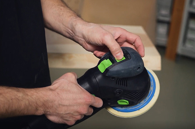 Išlyginę obliavimo smūgius, pereikite prie P120 grūdėtumo. Dabar atlikite dar vieną važiavimą šiurkščiu šlifavimo nustatymu.