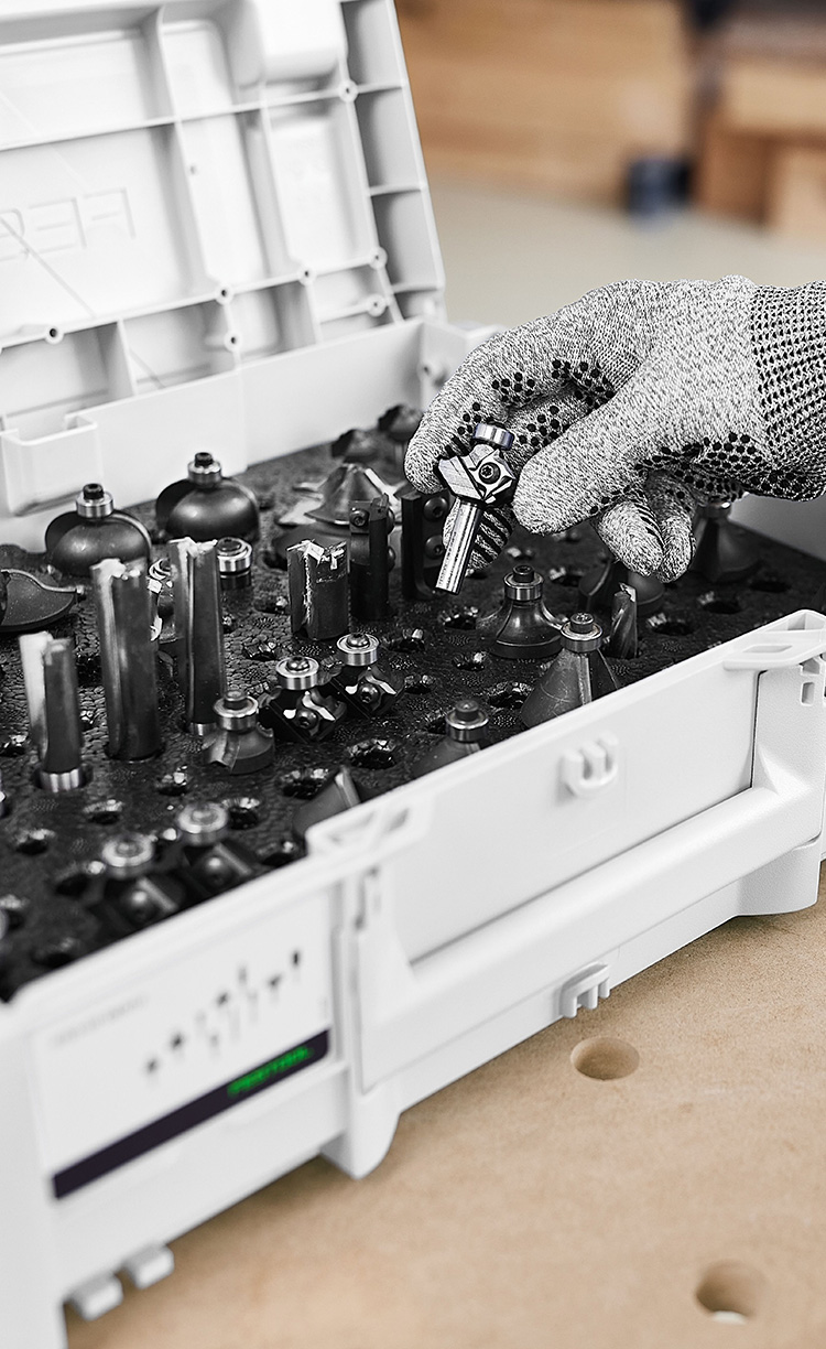 Visos frezos tinkamai sudėtos, apsaugotos ir paruoštos iš karto naudoti. Tiek frezų dėžutėje, tiek ir praktiškame Systaineryje³ su specialiais skyriais frezavimo įrankiams.