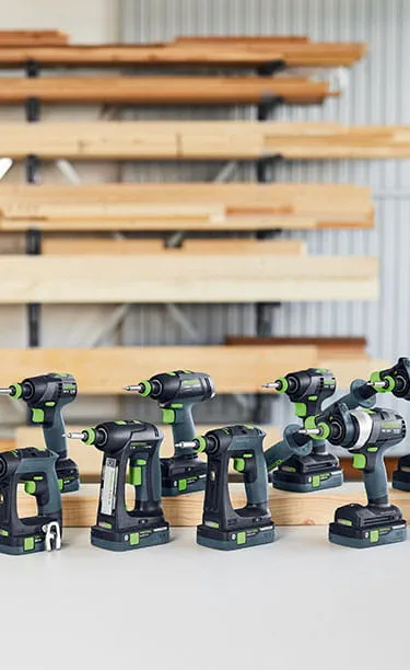 "Festool" akumuliatoriniai atsuktuvai yra universalūs ir universalūs įrankiai, kuriais galima dirbti greitai, tiksliai ir saugiai. Dideliu greičiu ir galingu sukimo momentu akumuliatoriniai atsuktuvai gręžia arba įsuka medieną, akmenį ir net metalą. Taip pat galite tiksliai ir kontroliuojamai dirbti sunkiai prieinamose vietose. Ilgai ir be nuovargio. Taip yra todėl, kad akumuliatoriniai atsuktuvai yra lengvi, kompaktiški ir puikiai subalansuoti. Akumuliatorinis atsuktuvas patogiai įsitaiso rankoje, o plonos rankenos leidžia puikiai jį valdyti. Akumuliatorinis gręžtuvas-suktuvas reiškia lankstumą, galią ir patikimumą, todėl tinka daugeliui darbų: Nuo lengvų surinkimo darbų iki sudėtingų gręžimo ir atsukimo darbų medienoje ir metale.