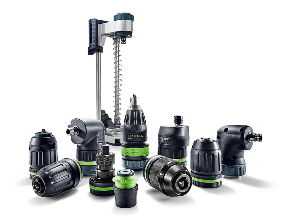 Festool akumuliatoriniai atsuktuvai puikiai dera sistemoje. Mūsų sistemos priedai, tokie kaip greito keitimo sistema, kampinis antgalis, ekscentrinis antgalis, fiksatorius, akumuliatorius, įkrovikliai, sukimo antgalis ir grąžtai, skirti įvairioms reikmėms, leidžia dirbti su "Festool" akumuliatoriniais suktuvais dar efektyviau.